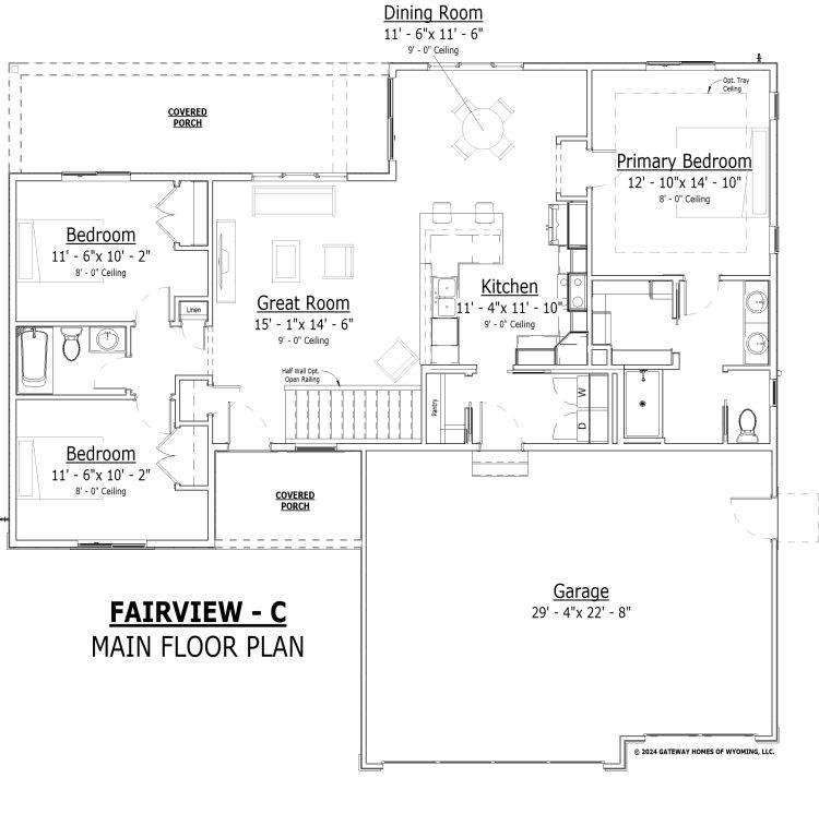 Welcome to ranch-style living at its finest. The Fairview features an open floor plan with great flow between entry, great room, dining and kitchen. Whether you're a first-time buyer, downsizing or empty nesters, you will appreciate the function and features of this home, especially the standard three-car garage! With additional options such as a bay window bump-out, dining hutch built in, workspace and bookcases in bedrooms, and larger primary suite, you're sure to achieve a custom feel with this plan.