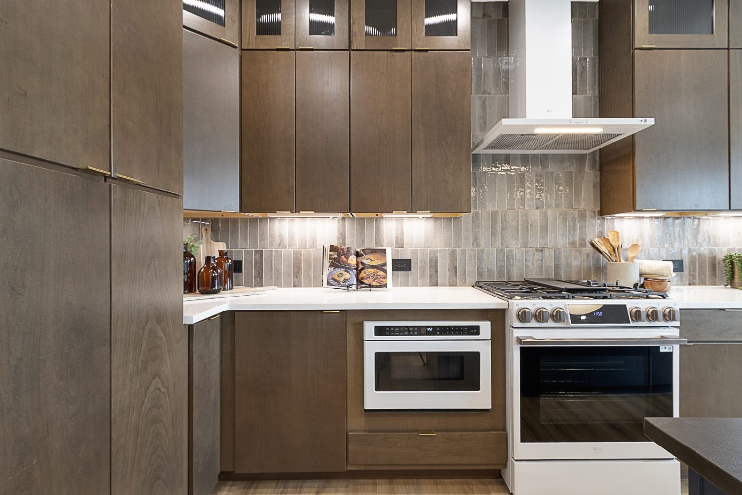 The Sawyer’s gorgeous gourmet kitchen definitely turned heads as paradegoers awarded it “Best Kitchen” honors. The cabinetry layout includes 1951 Cabinetry™ with the Lubbock design in Cherry Clove for a minimalistic, mid-century modern look. Reeded glass upper cabinets and custom under-cabinet lighting offer a blend of functionality and elegance.