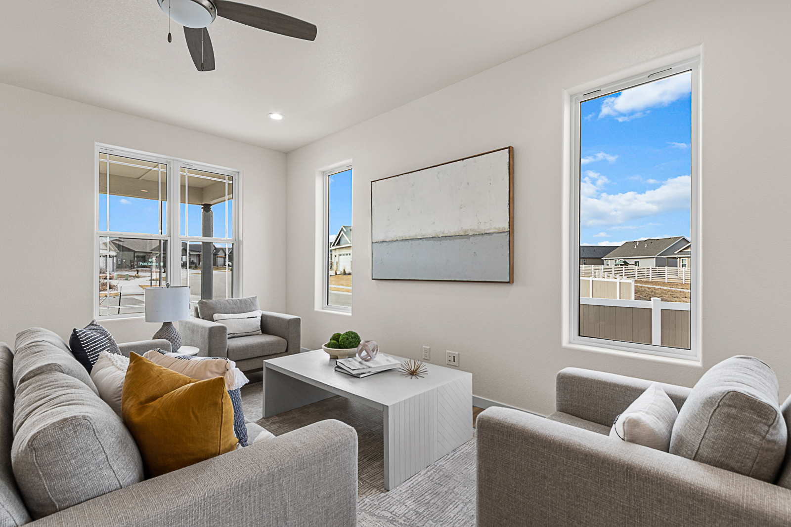 The flowing layout of Gateway’s Alder floor plan has become a perennial favorite! The comfortable great room and kitchen feature a spacious, open layout that’s ideal for both everyday living and entertaining. The sunny primary suite offers oversized windows, a walk-in tile shower and large closet space. Enjoy evening sunsets and prairie views from the covered patio, located just off the dining room. If you desire additional living space, the optional finished basement with nine-foot ceilings offers endless possibilities. This amazing property is located on a corner lot in Sweetgrass, a charming neighborhood perfectly situated within a few minutes’ drive to downtown Cheyenne.