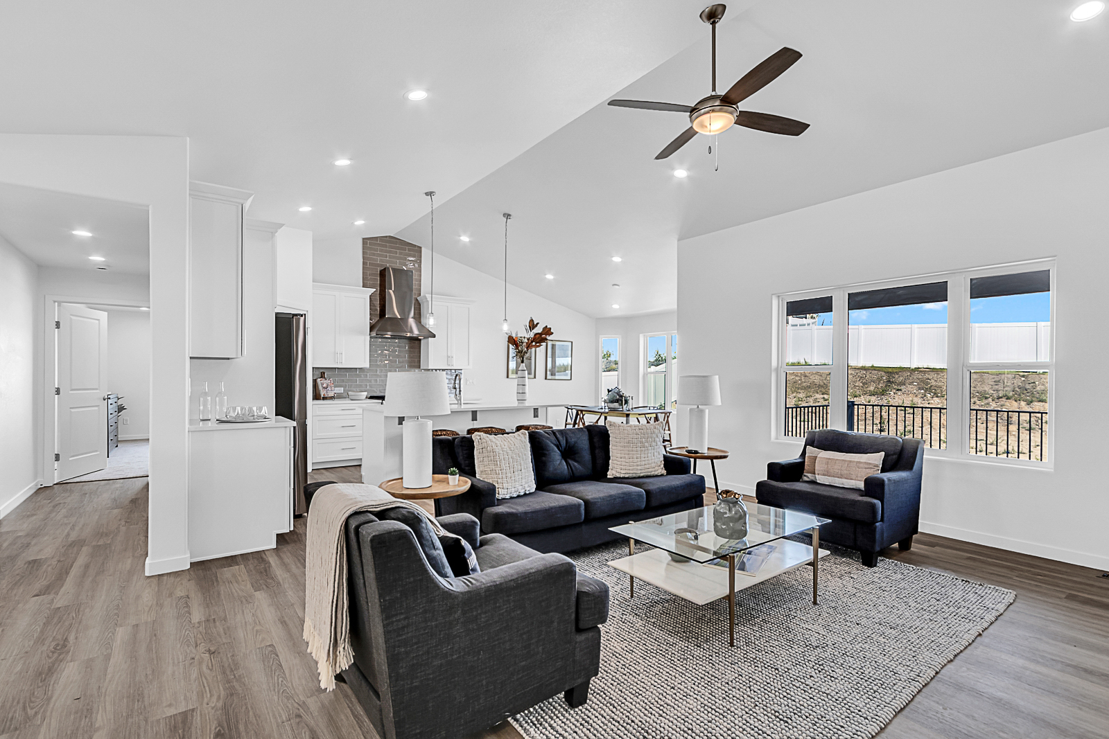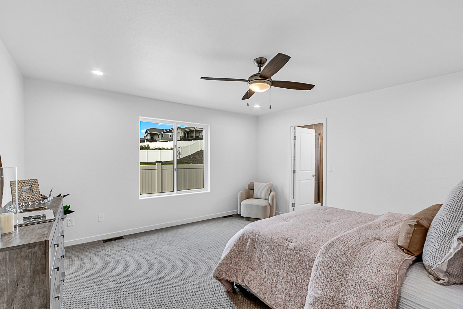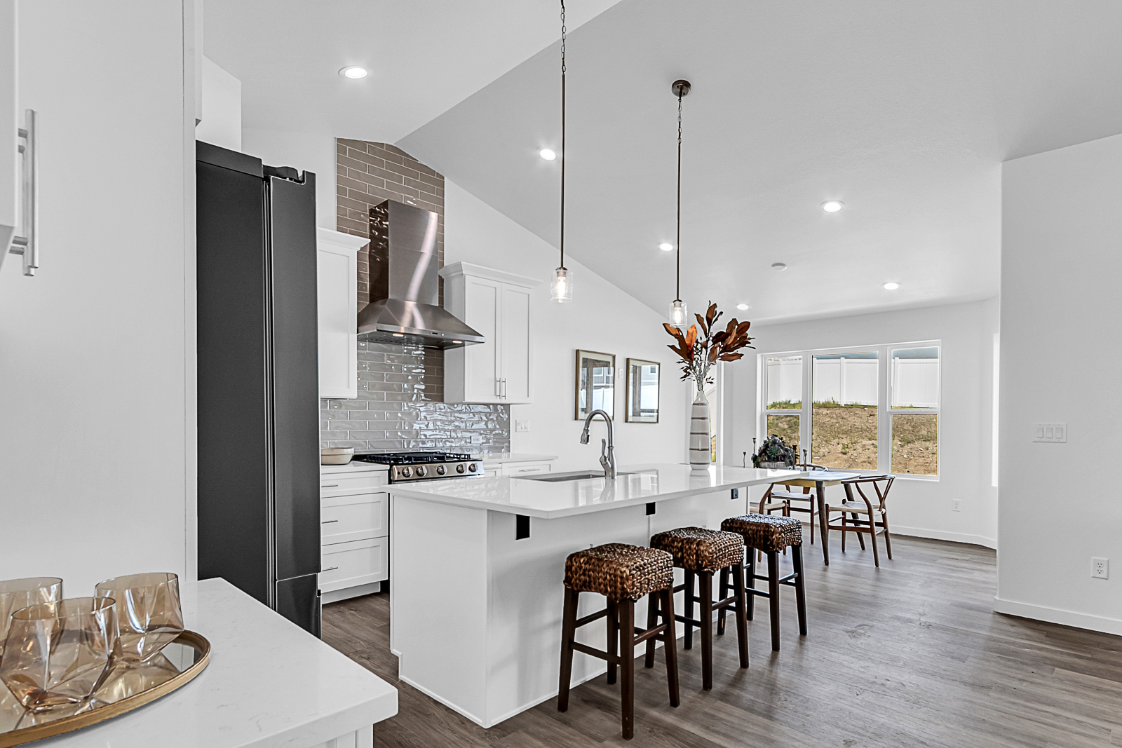 The elegant Bighorn II by Gateway Homes offers a bright, open layout with a gourmet kitchen featuring quartz countertops and a spacious walk-in pantry. The private primary suite includes quartz countertops and a generous walk-in closet. The unfinished basement provides room for future expansion with space for additional bedrooms, a full bath and a large family room. Enjoy outdoor living on the covered composite deck. A rare find, this home also includes an impressive 30-foot-deep three-car garage, ideal for oversized vehicles, storage or a workshop. Located in the desirable Saddle Ridge community.Â